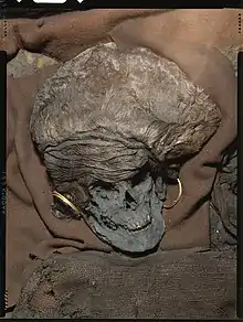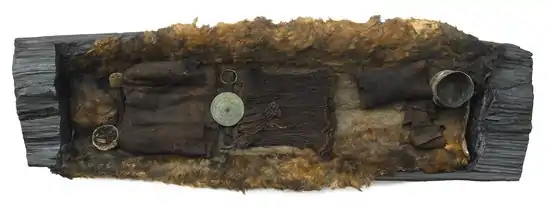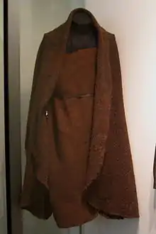 Mændene bar nyreformede kapper vævet af stærkt valket fåreuld. Om livet bar de en kofte. Grundlaget for disse tøjstykker har været et firkantet tøjstykke, omkring 150 cm bredt. Heraf blev først udskåret kappen. De resterende stykker blev anvendt til at lave koften, der blev syet sammen af flere tøjstykker. De fleste af mændene bar runde huer på hovedet. Mændene er blevet begravede med et sværd.[27]