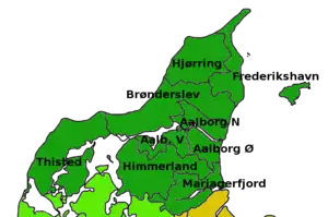Kort over Nordjyllands Storkreds. Bemærk at Aalborg Nordkredsen har et lille hak syd for Limfjorden.
