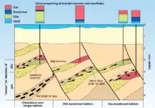 - kildebjergarten skal være sunket ned til en dybde, hvor det organiske indhold i såkaldte kulbrintekøkkener kan omdannes til kulbrinter, og den skal være begravet af tykke, overliggende lag,