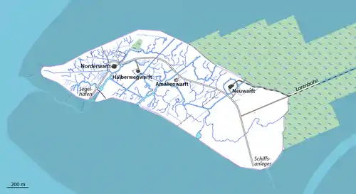 På halligen er der fire værfter, en folkeskole med 2 elever og en kro. Stadige nedbrydninger af kysten har gjort halligen mindre, men moderne kystsikring har i nutiden sat en stopper for denne udvikling. Halligen er forbundet med Beltring Herred Kog (Beltringharder Koog) på fastlandet med en 3,5 km lang banedæmning.