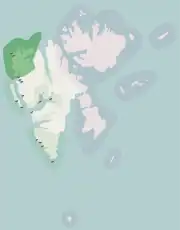 ![]() Nordvest-Spitsbergen nationalpark i Svalbard. Andre nationalparker i grøn; naturreservater i lilla; geotopområder i orange; fuglereservater med fugleikoner.  | |
