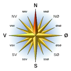 | Nord til øst[1] | N. t. Ø. | 11,25° | 12,5 gon |