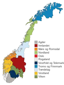 Landet bestod fra 1972 til og med 2017 af 19, fra 2018 af 18 (Trøndelag sammenlagt) fylker. Fra 2020 reducerede Regionsreformen i Norge 19 fylker til 11, hvoraf Oslo kommune udgør ét.[1]