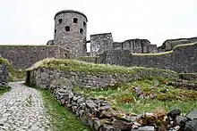 - Peel Castle (Isle of Man, Storbritannien), opført af Magnus Barfod