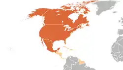 Medlemmer af NAFU (orange), medlemmer af CONCACAF (orange og camel).