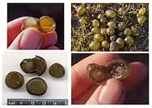 - May 22nd, 2012, res.ku.edu: Anyone Hungry for Some Sea Tomatoes? Arkiveret 1. december 2015 hos Wayback Machine Citat: "...Lauren and Danny would also like to know if this type of cyanobacteria, Nostoc pruniforme, produces any toxins that may contaminate the water or make the tomatoes dangerous to eat..."