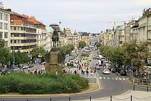 Det mest markante i Nové Městos bybillede er den 750 m lange og 60 m brede Václavské náměstí, en plads, der fungerer som et af det nuværende Prags forretningsmæssige centre. Her findes en lang række moderne forretninger afvekslende med hoteller, restauranter og underholdningsetablissementer. Pladsen, der oprindeligt på Karl 4.'s tid fungerede som hestemarked, har primært bygninger fra midten af det 19. århundrede og frem til starten af det 20. århundrede. Ved den sydøstlige ende af pladsen findes statuen af byens skytshelgen Sankt Václav som vartegn foran Nationalmuseet.