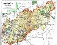 Guvernementet var delt i 11 kredse: Belozersk; Borovitsji, Demjansk, Kirilov, Kresttsy, Novgorod, Staraja Russa, Tikhvin, Tsjerepovets, Ustjuzjna og Valdaj.[1]