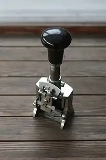 En nummeratør til bogtryk har en taste, der når trykpressen presser trykelementet mod papiret, tæller nummeratøren én op. Tallene står ophøjet på en række metalcylindre med en menteoverføringsmekanisme.