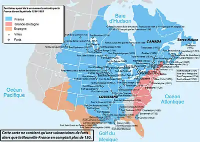 Frankrigs kolonisering af Nordamerika begyndte for alvor med grundlæggelsen af Port Royal i kolonien Acadia (1605). Få år senere (1608) blev Québec, der skulle blive hovedstad for den enorme, men tyndt befolkede, pelshandelskoloni, Ny Frankrig.