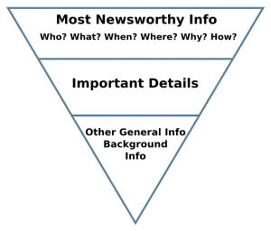 En gammel huskeregel siger dog, at nyhedsartiklen så tidligt som muligt skal besvare de hv-spørgsmål (hvem, hvad, hvor osv.), som læseren naturligt måtte have.
