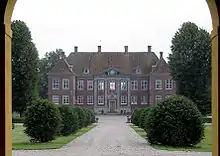 Herregården er den første i Danmark i barokstil og er opført i røde mursten samt i sandsten med rødt tegltag. Den er omgivet af en voldgrav på oprindeligt fire, men siden 1780'erne tre sider. Fra 1809 indtil lensafløsningen var herregården centrum for Baroniet Stampenborg.