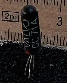 Produktionen af OC71-familien (OC70, OC71 og OC75) blev startet i 1954 af Philips (datterselskaber: Mullard (UK), Valvo Gmbh. (Tyskland) og La Radiotechnique (Frankrig)).[1] Transistorproduktkoderne "OC70", "OC71" og "OC75" følger Mullard-Philips elektronrørsbenævnelsen, "O" indikerer at elektronrøret har en koldkatode - "C" indikerer at det er en triode - og fx "70" er et løbenummer.[2] En transistor er ikke et elektronrør, men ikke desto mindre blev transistorerne mærket med en udbredt europæisk elektronrørsbenævnelse.