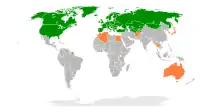 OSCE's medlemslande (grøn) og samarbejdspartnere (orange)