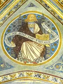 Fresko i Mariekirken i Bergen på Rügen med afbildning af Obadias med indskriften "På Zions bjerge vil der være frelse" (Auf dem Berge Zion wird eine Errettung sein). | |