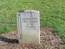 Oconostota blev begravet i sin hjemby. Med i graven fik han et par briller, som han på et tidspunkt havde fået som gave, og som han var meget glad for.