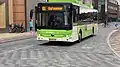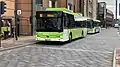 Odense Bybusser i de tidligere farver for Odense Bytrafik og selskabet "Odense Bybusser"