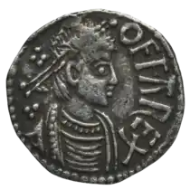 ![]() Sølvpenning med Offa. Tekst: OFFA REX | |