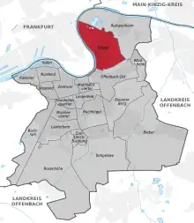 Offenbach-Bürgels beliggenhed i Offenbach am Main