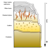 En fuldstændig ofiolitsekvens omfatter alle den oceanske plades bjergarter, fra dybhavssediment og dybere via pudelava, diabasgange og gabbro til ultrabasiske bjergarter.[1]