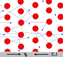Når et materiale er en del af et elektrisk kredsløb, danner spændingskilden et sådant elektrisk felt i materialet, hvilket accelererer elektronerne. I Drude-modellen antages det dog, at elektronerne vil kollidere med de enkelte atomer i materialet og derved tabe accelerationen. Elektronen har derfor kun et kort tidsrum , hvor den efffektivt accelereres. Den gennemsnitlige hastighed - kaldet drift-hastigheden - er derfor accelerationen gange denne tid: