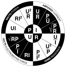 Formelbogstaverne U, R og I har deres oprindelse i de tyske ord: U = Unterschied, (spændings)forskel; R = Resistanz, modstand; I = Intensität, intensitet (strømstyrke). P er formentlig afledt af engelsk Power, effekt.