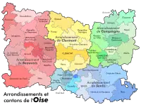 Der er 4 arrondissementer, 21 kantoner og 688 kommuner i Oise.