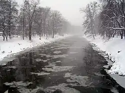 | Vinterbillede af Olza set fra broen der forbinder Český Těšín med Cieszyn | |