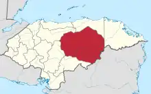 Det er det største af departementerne i landet og grænser mod syd op til Nicaragua. Departementets hovedstad er Juticalpa.