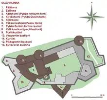 Olavinlinna (også kendt som St. Olafs Slot ; svensk: Olofsborg) er et slot fra det 15. århundrede med tre tårne i Savonlinna, Finland . Det er bygget på en ø i Kyrönsalmi-strædet, der forbinder søerne Haukivesi og Pihlajavesi . Det er den nordligste middelalderlige stenfæstning, der stadig eksisterer.[1]