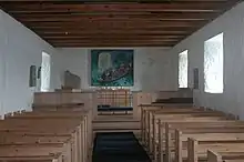 1965-67 blev kirken restaureret, og genindviet den 3. september 1967. Alterbilledet, som forestiller en fiskebåd, er malet af Sámal Mikines. Indgangportens glaskunst er lavet af Tróndur Patursson.