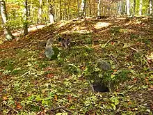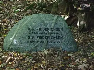 Få m. fra dyssen er indrettet et moderne gravsted for skovens tidligere ejer med en mindesten.
