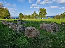 Hellekisten fra Karlstruphøjen, rekonstrueret på Jens Michelsens toft.