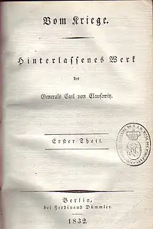 Værket blev skrevet 1816 - 1830 umiddelbart efter Napoleonskrigene og udgivet posthumt i 1832 af Clausewitz' hustru.