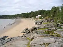 Floderne Onega, Kem og Vyg løber ud i bugten. Bugten har mange øer, hvoraf de største og mest kendte er Solovetskij-øerne helt ude ved indløbet til bugten, hvorpå Solovetskij-klosteret er beliggende. På vestkysten, ved byen Belomorsk, ligger udløbet af Hvidehavskanalen. Andre byer ved bugten er Onega og Kem, som ligger ved udløbet af de respektive floder med samme navne. 64°20′N 36°30′Ø