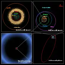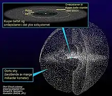 Skyen formodes at danne en tyk kugleskal, som ligger i en afstand af 50.000 til 100.000 astronomiske enheder (AE) fra solen, dvs omkring 2.000 gange længere ude end Pluto og ca. en tredjedel af afstanden til den i øjeblikket nærmeste stjerne, Proxima Centauri.