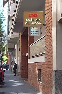Zurbano n.º 92; på mezzaninen hvor Merino Batres' laboratorium var placeret, et andet nøglested for netværket, vist med skiltet Análisis Clínicos.