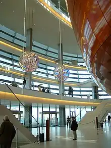 Dansk-islandske internationalt anerkendte Olafur Eliasson, har kreeret tre store lysekroner. De måler hver især tre meter i diameter og er monteret med 8000 spejle og 300 lamper. De glimter selv i sollys. Hver enkelt er monteret i loftet med fem kobberrør i en pentagon.
