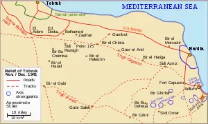 Den 26. november gav Scobie ordre til et angreb, som lykkedes, mod Ed Duda højderyggen, og i de tidlige morgentimer den 27. november fik Tobruk-garnisonen forbindelse med en lille styrke newzealændere.[19]