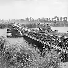 - Disse var de første af 1500 Baileybroer som blev bygget af den britiske hær under felttoget i Nordvesteuropa.[101]