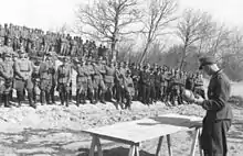 | Det er svært at måtte se på at seks støvleklædte soldater gør sig det behageligt i det grå værelse, det lille bibliotek og ovenpå i det store soveværelse. Det minder mig til stadighed om nederlaget. Jeg er dybt ulykkelig [14] | ||
