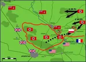 Sidst på eftermiddagen den 19. august havde canadiske og polske styrker fået kontakt med den amerikanske 80. division og 90. division, som allerede var placeret i byen. Falaise-lommen var lukket og Models styrker omringet. Men da ringen var sluttet, havde Models 2. SS-panzerkorps indledt sit angreb mod de polske styrker på Hill 262 i håb om at genåbne lommen.[21] Da de amerikanske og canadiske styrker stod overfor tyske modangreb i deres respektive sektorer, måtte de polske styrker forsvare sig mod to erfarne panserdivisioner for at holde lommen lukket.