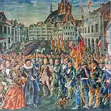 Udråbelsen af den provisoriske regering i Slesvig-Holsten den 24. marts 1848 var resultatet af et oprør mod den danske kongemagt. Maleri af August Deusser, 1917.