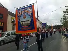 Ordenens flag, også kaldt Boyne-fanen, som består af en orange baggrund med Sankt Georgskors og en purpur stjerne som var symbolet for tilhængerne af Vilhelm 3.