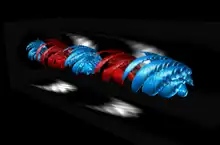 - ist.utl.pt: Prof. Jorge Vieira: Structured light. Structured light and lasers with orbital angular momentum. A new twist for plasma physics?, backup Citat: "...Structured lasers have non-trivial phase structures and polarisations. A well known example of structured light is the orbital angular momentum. Lasers with orbital angular momentum are characterized by helical wavefronts, with a phase singularity at the center of the laser, and have doughnut shaped intensity profiles. They are interesting from a fundamental point of view because they possess quantized amounts of angular momentum. Unlike circularly polarized light, which is featured by spin-angular momentum, twisted lasers contain angular momentum even if they are linearly polarized...Together with Dr. Raoul Trines from Rutherford Appleton Laboratory, I have recently shown that Raman backscattering can efficiently generate and amplify twisted lasers with orbital angular momentum...A laser with orbital angular momentum in a special configuration of stimulated Raman backscattering in plasmas..."