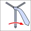 Med notationen fra The 85 Ways to Tie a Tie, bindes knuden på følgende måde: