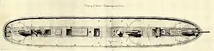 - Artilleri (1865): 3 styk 18 pund (14 cm) riflede forladekanoner.