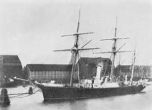 - Artilleri (1878): 3 styk 18 pund (14 cm) riflede forladekanoner og 2 styk 37 mm kanoner.