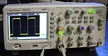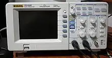 Et oscilloskop er et måleinstrument, der bruges inden for elektronikken til at visualisere elektriske signaler som en graf på en skærm: Grafen viser almindeligvis hvordan signalets spænding varierer over tid.[2][3]
