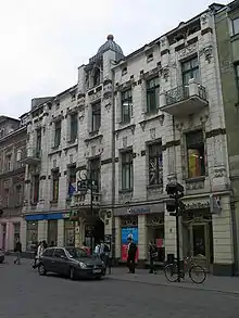 Bygningen blev opført i 1870 til Oskar Kon, som i sin tid var den rigeste jødiske fabrikant i byen. I 1901 blev murstenshuset bygget om til den form det har i dag, efter tegninger af Gustaw Landau-Gutenteger, som samtidig åbnede sit arkitektkontor der. Bygningen var det første eksempel på art nouveau-arkitektur i Łódź. Facaden blev pyntet med plantemotiver i form af laurbærblade, blomster og bladknopper rundt om porten og vinduerne.